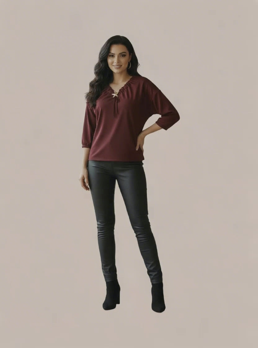 Blouse burgundy Décolleté Froncé avec Broche Étoile – Pièce Unique